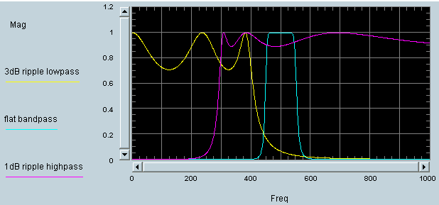 The filters implemented include the classical polynomial definitions of Chebychev (equal ripple) and Butterworth (maximally flat) filters.