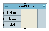 o_importCLib( "games", "C:\temp\gameLib.dll", ["long __stdcall chess(int difficulty)","long __stdcall go(int difficulty)"]) imports the compiled library gameLib.dll with the library name "games".