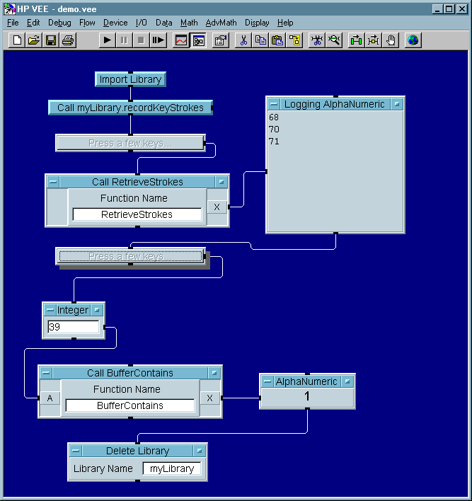 key stroke information into a VEE program.