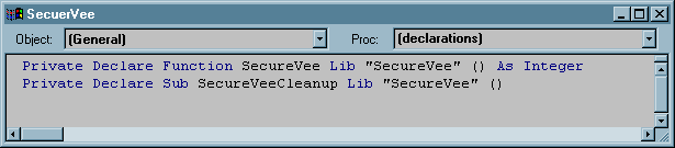 Using the SecureVee DLL from Visual Basic is relatively similar to using it from VEE. Your Basic application first attaches the DLL and makes provisions for calling the exported functions. Figure 4 illustrates the way we attached the DLL and exposed its capabilities in our form.